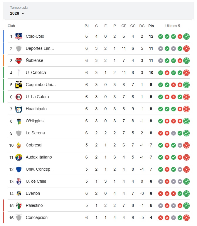 Los albos aprovecharon las derrotas de Limache y la Universidad Católica para trepar al liderato de la tabla, un resultado que a inicios de campeonato parecía imposible. Es que los dirigidos de Fernando Ortiz están ganando sin jugar bien, todas sus victorias se dan por 1 gol a 0 y eso es suficiente para liderar en el fútbol chileno.