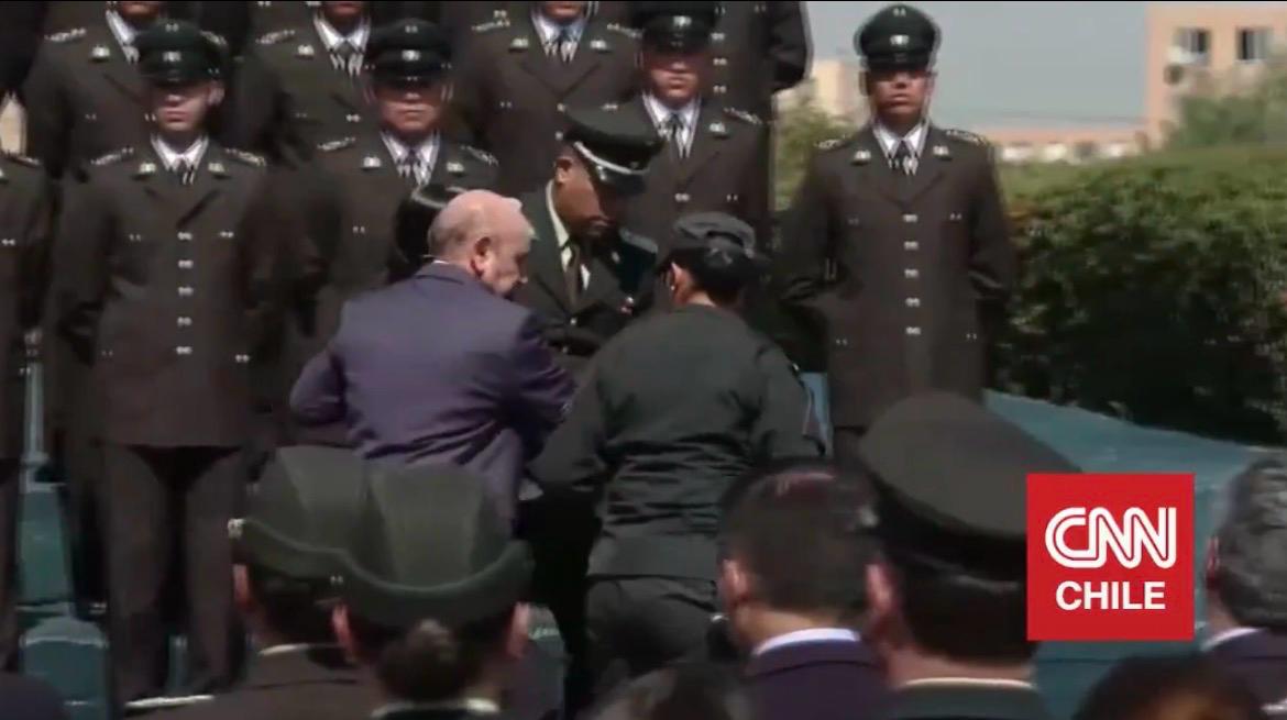 En ese momento, durante la transmisión oficial se vio como una joven gendarmes se desvanece a espaldas del presidente kast mientras este daba su discurso. “Vamos a pedirle al doctor que ejerza su rol, voy a hablar más rápido para que no seguir aburriendo…”, dijo el Mandatario, mientras se sacaba del lugar a la funcionaria afectada.