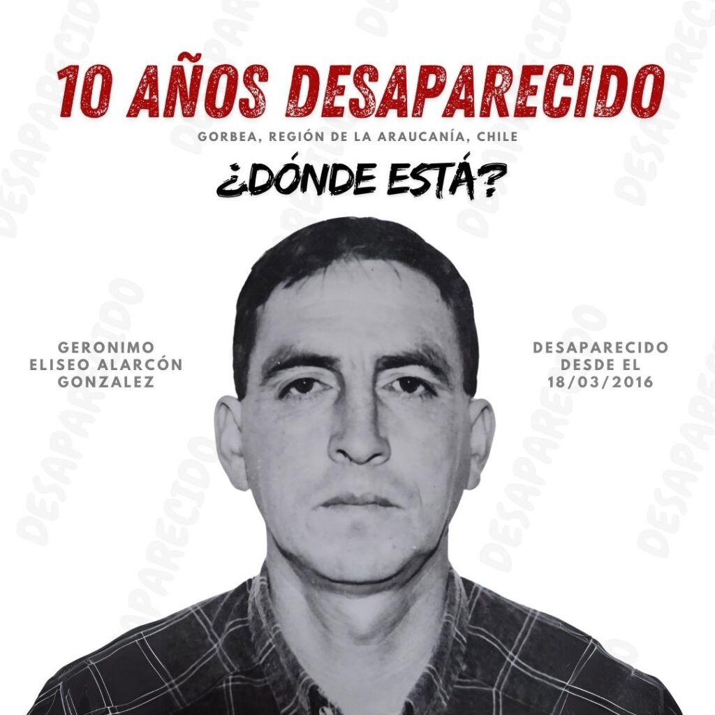 Este 18 de marzo se cumplieron diez años desde la desaparición de Gerónimo Eliseo Alarcón González, conocido como “El Banana”, en la comuna de Pitrufquén, cuyo paradero continúa siendo desconocido.