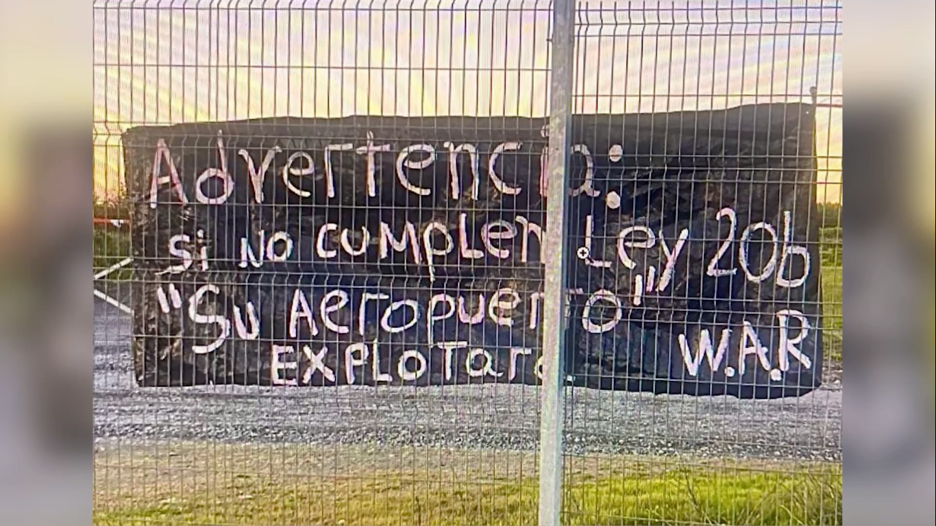 El Ejército confirmó un operativo de seguridad en el Aeropuerto de La Araucanía, luego de que un lienzo con amenazas apareciera en las inmediaciones del terminal aéreo ubicado en Freire, obligando a elevar la alerta de seguridad a nivel naranja.