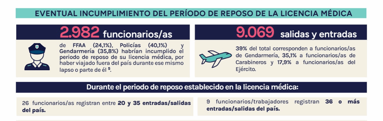Se contabilizaron 9.069 entradas y salidas del país realizadas por funcionarios que se encontraban con licencia médica entre los años 2023 y 2024.